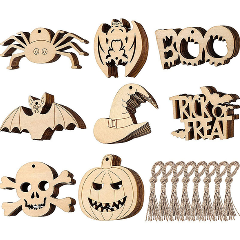 Pendentif d'halloween en bois suspendu, décoration de maison, manuel bricolage de vacances, ornement découpé au laser, décoration