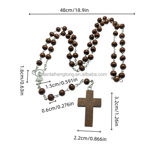 A buon mercato 6*7mm rosario marrone scuro vergine maria rosari perline di legno religioso cattolico collana croce bianca ciondolo in magazzino